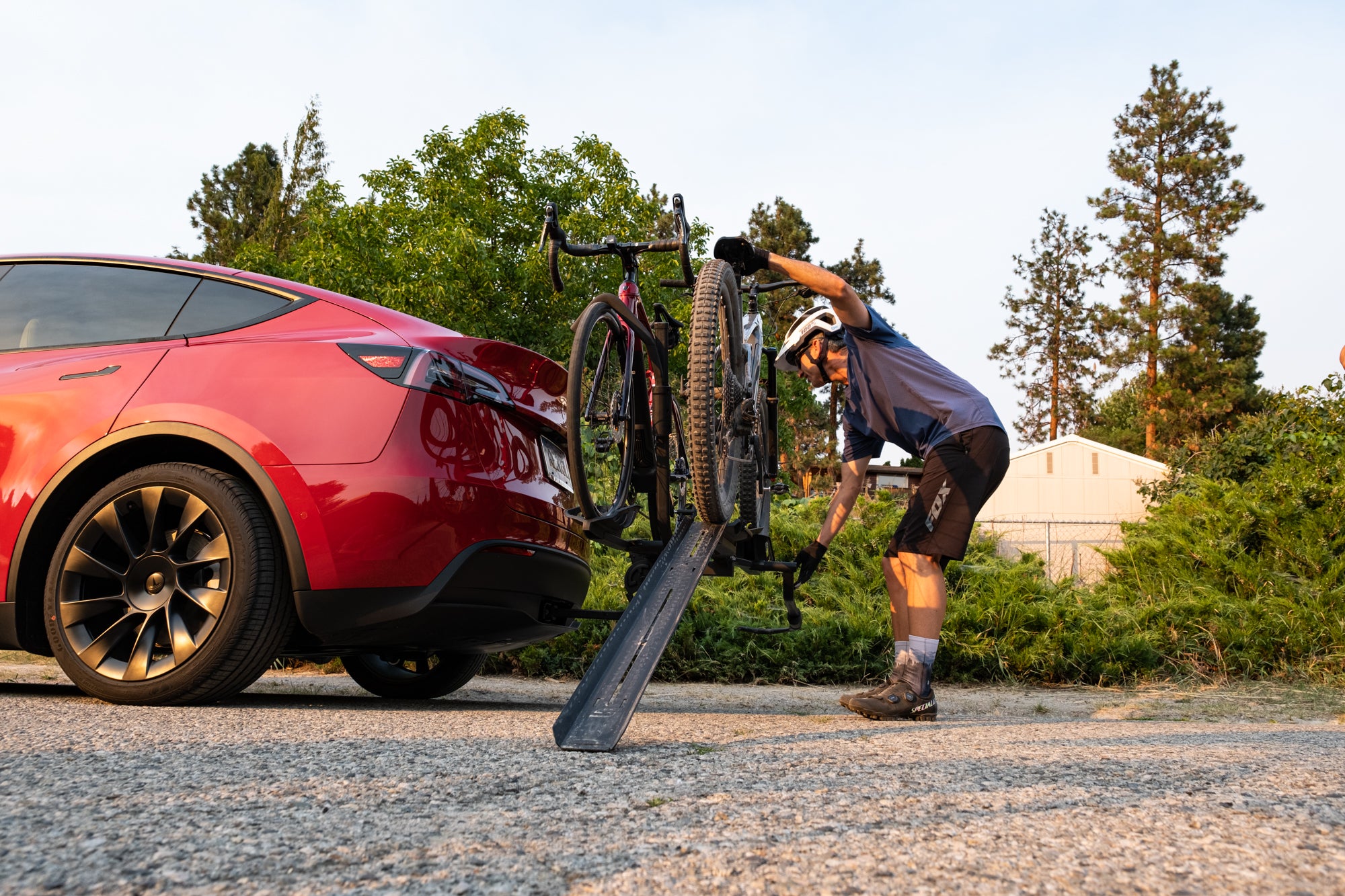 The telescoping ramp rests easily on the Skaha or Escapee rack to make loading heavier bikes a breeze.