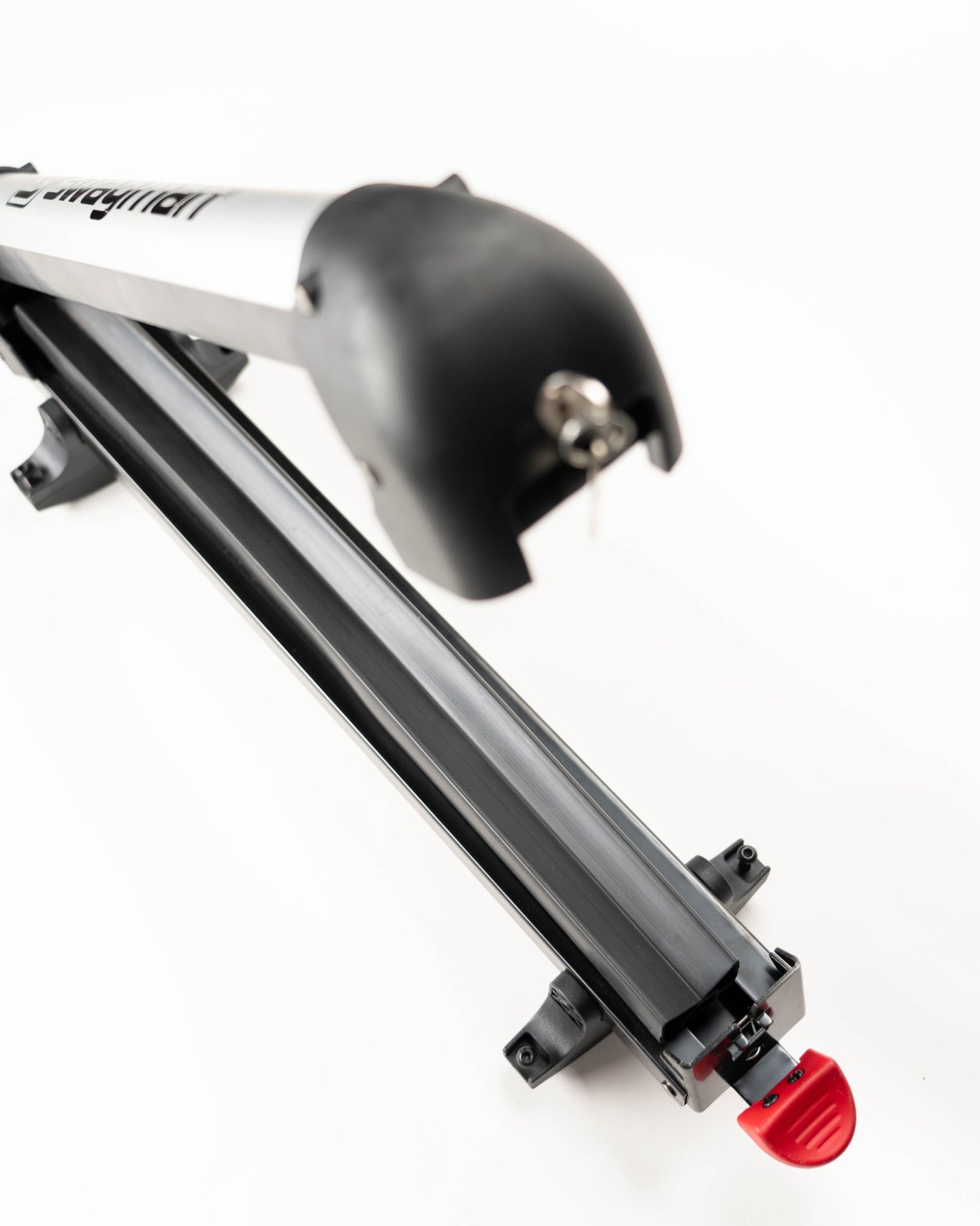 The Squall 4 is a compact roof-mounted ski and snowboard rack designed to carry up to 4 pairs of skis. Its spring-loaded arms open easily with red release buttons, while rubber-coated clamps hold your gear securely without damage. Compatible with round, oval, or square crossbars, it locks for added security and delivers reliable winter transport in a sleek, durable design